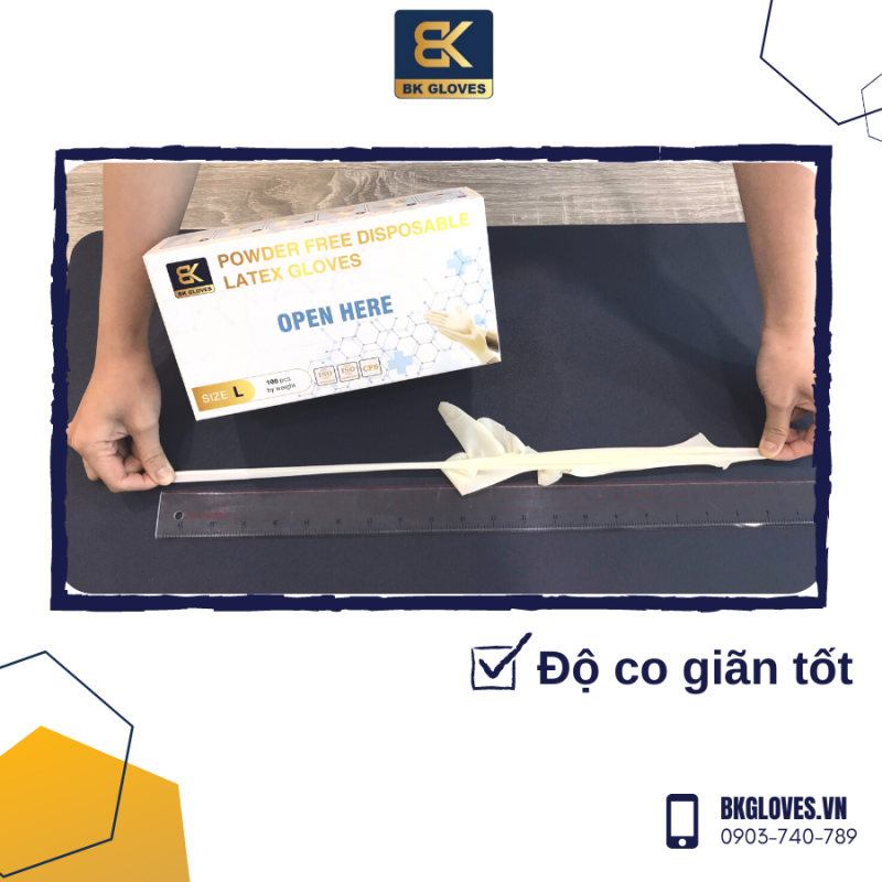 Găng tay cao su Latex không bột BK Gloves được làm từ vật liệu Latex Cao su Tự nhiên theo công nghệ mới với những ưu điểm chính như:
